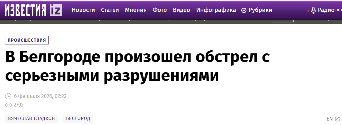 2月3日夜晚至4日凌晨,乌克兰对俄罗斯别尔哥罗德的能源基础设施实施了报复性的大规模袭击。导致该地能源基础设施严重受损,数十万别尔哥罗德人在一个月内迎来第二次大规模断电、断水、断暖的难过日子后,乌克兰的炮火在2月5日夜至6日凌晨,继续袭击别尔哥罗德。